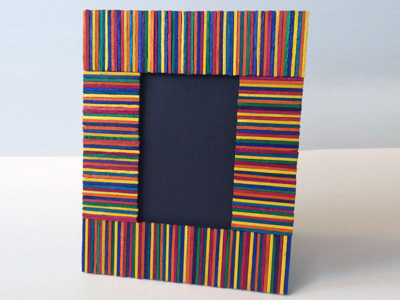 With glue, coloured mini-sticks and a photo frame that we provide in this kit you can create a dazzling piece to frame your pictures.