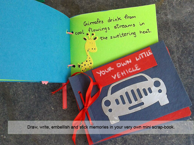 Draw, write, embellish and stick memories in your very own mini scrap-book.