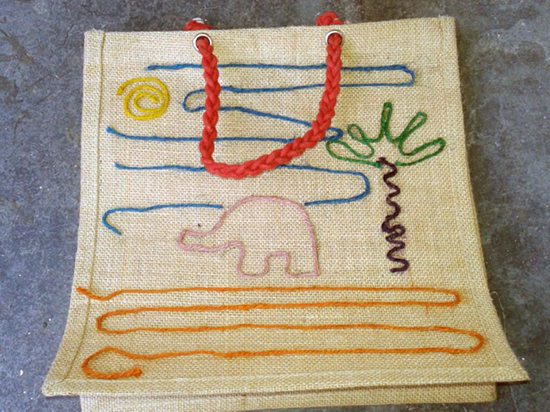 Jute, thread, glue (which we provide) and a vision is all you need to make this amazing bag!